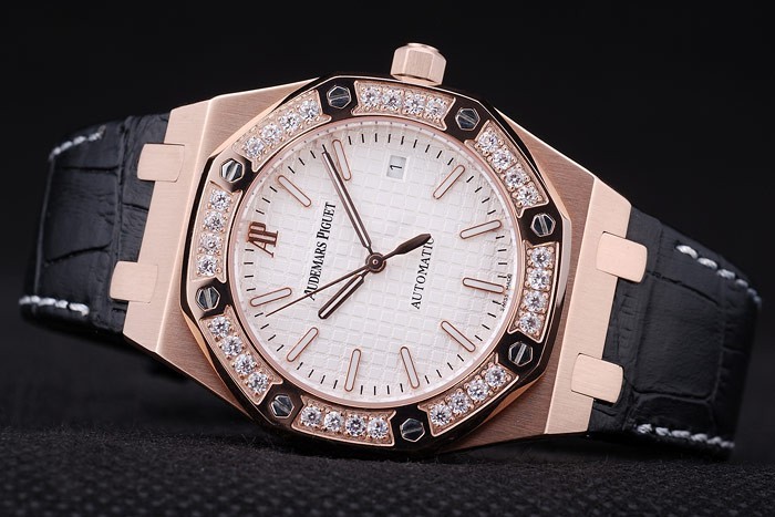 Crown: 18k rose-gold plated cutwork crown with Audemars Piguet logo
