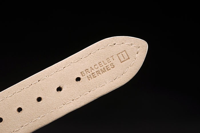 Bracelet: White leather strap with heat embossed stamp Bracelet Hermes and Hermes engraved polished stainless steel hook-buckle clasp