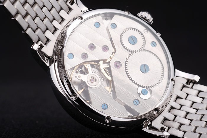 Back: Transparent back with polished stainless steel screwed down rim
