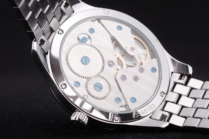 Back: Transparent back with polished stainless steel screwed down rim