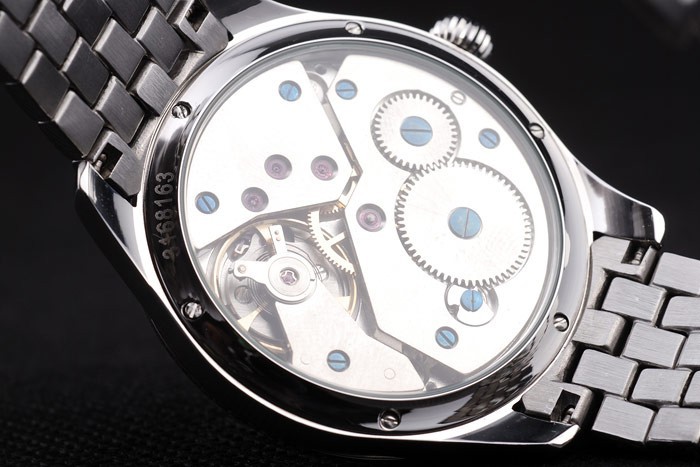 Back: Transparent back with polished stainless steel screwed down rim