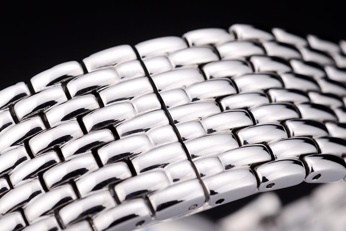 Bracelet: Finely linked stainless steel link bracelet with hidden clasp