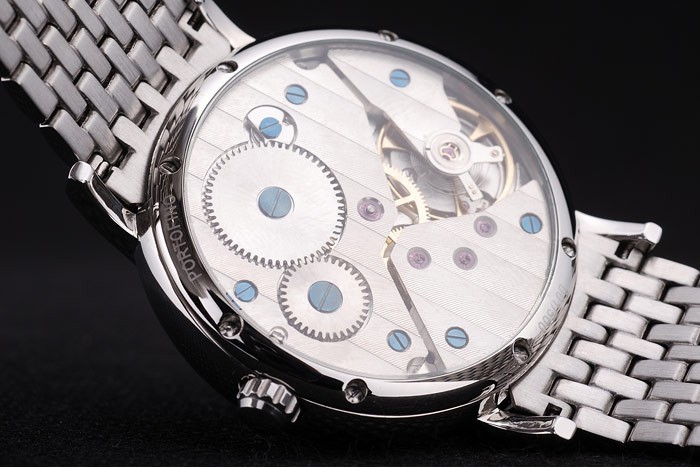 Crown: Polished stainless steel cutwork crown with IWC logo engraving