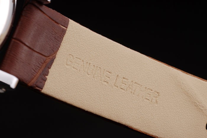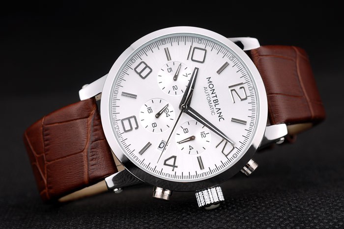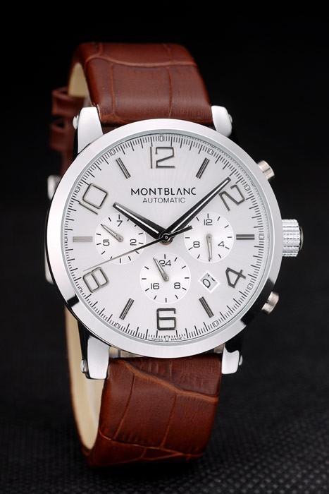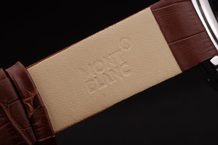 Bracelet: MontBlanc heat embossed brown crocodile leather strap with MontBlanc engraved polished stainless steel hook-buckle clasp