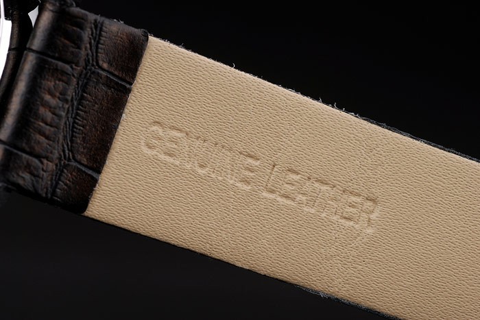 Bracelet: MontBlanc heat embossed black crocodile leather strap with MontBlanc engraved polished stainless steel hook -buckle clasp