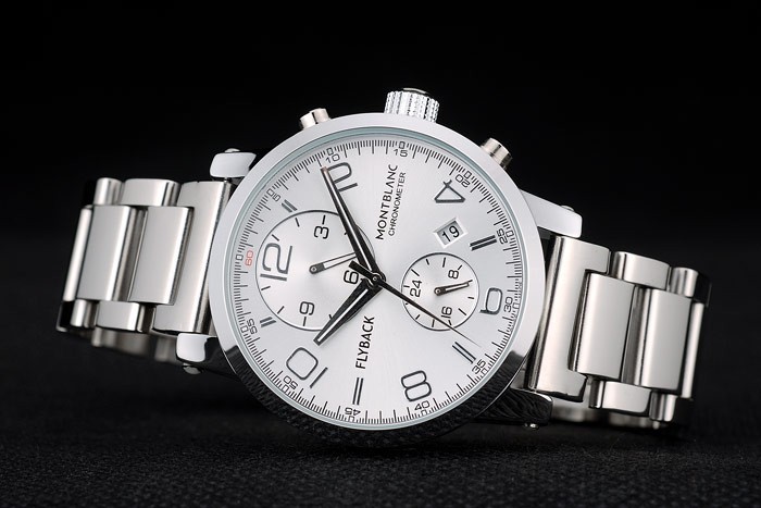 Crown: Polished stainless steel cutwork crown with MontBlanc logo and two polished stainless steel push button crowns on either side of it
