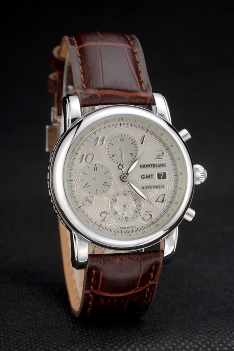 Crown: Polished stainless steel rounded cutwork crown with MontBlanc logo and two polished stainless steel push button crowns on either side of it