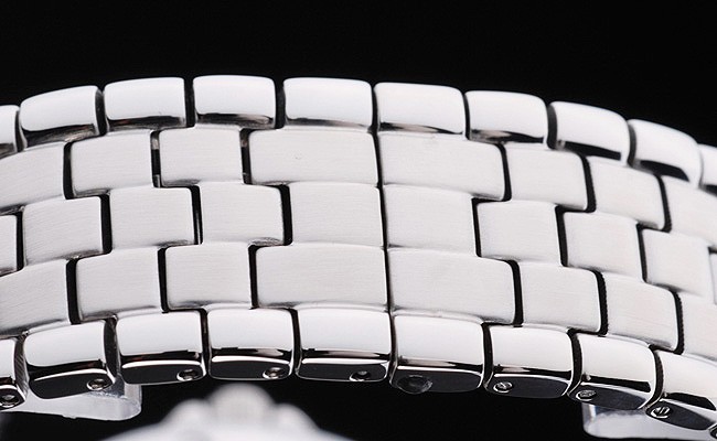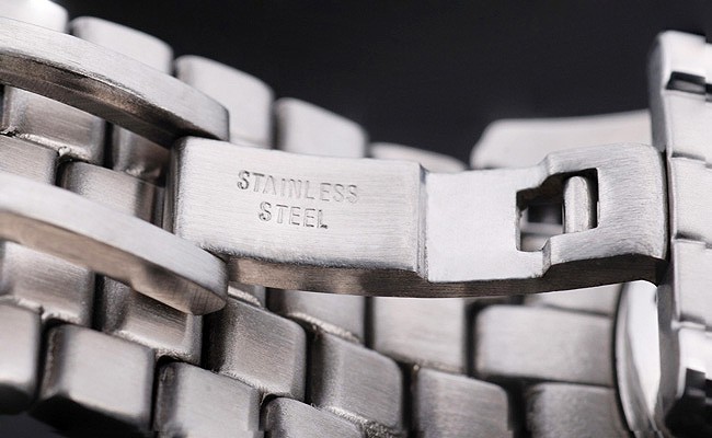 Crown: Polished stainless steel cutwork crown with Omega logo