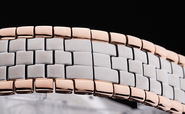 Bracelet: Rose-gold plated and brushed stainless steel link bracelet with hidden clasp