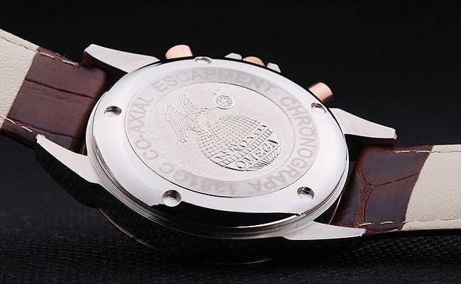Bracelet: Brown crocodile leather strap with white stitching and Omega logo engraved yellow gold hook-buckle clasp
