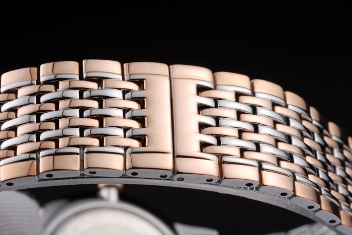 Bracelet: Finely linked rose-gold and polished stainless steel bracelet with hidden clasp