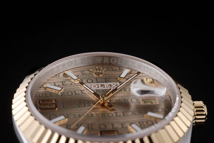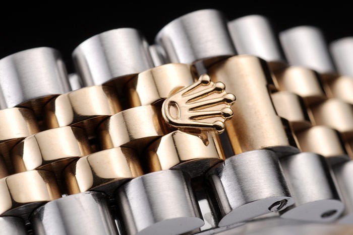 Crown: 18k yellow gold plated stainless steel cutwork crown with Rolex logo