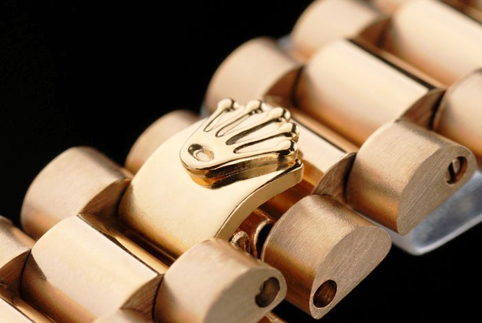 Crown: 18k yellow gold plated steel cutwork crown with Rolex logo