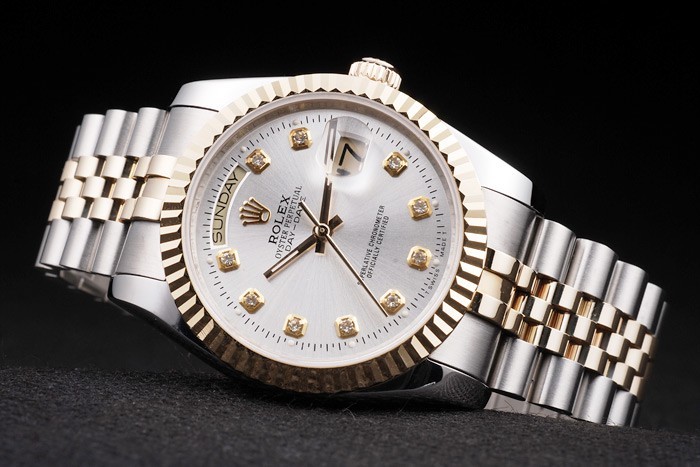 Back: Push in stainless steel back with green Rolex sticker and markings
