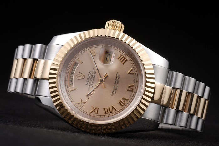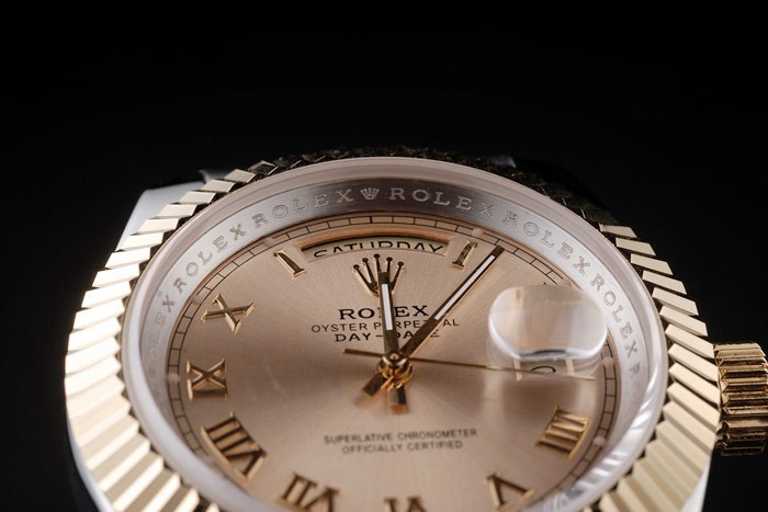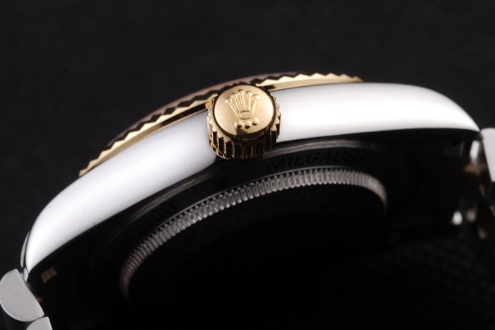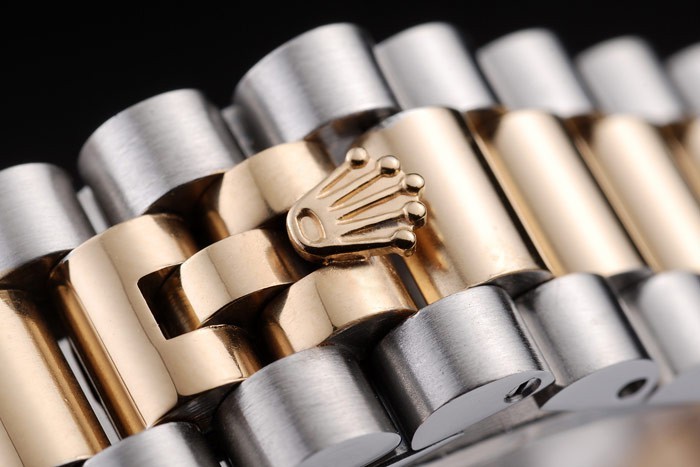 Crown: 18k yellow gold plated stainless steel cutwork crown with Rolex logo