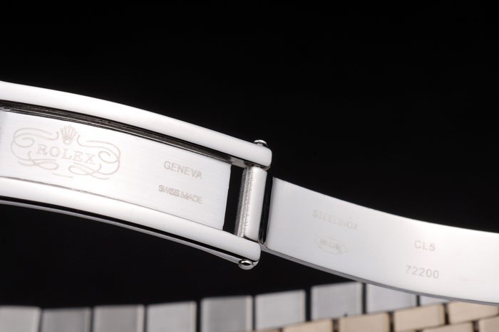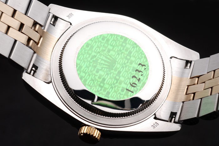 Back: Stainless steel push-in case back with green Rolex logo stamp
