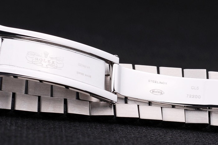 Bracelet: Brushed and polished stainless steel bracelet with Rolex engraving hidden clasp displaying the Rolex logo