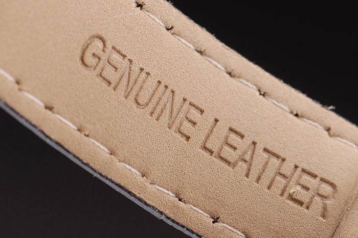 Bracelet: Rolex heat embossed black crocodile leather strap with engraved yellow gold deployment clasp with Rolex logo on top
