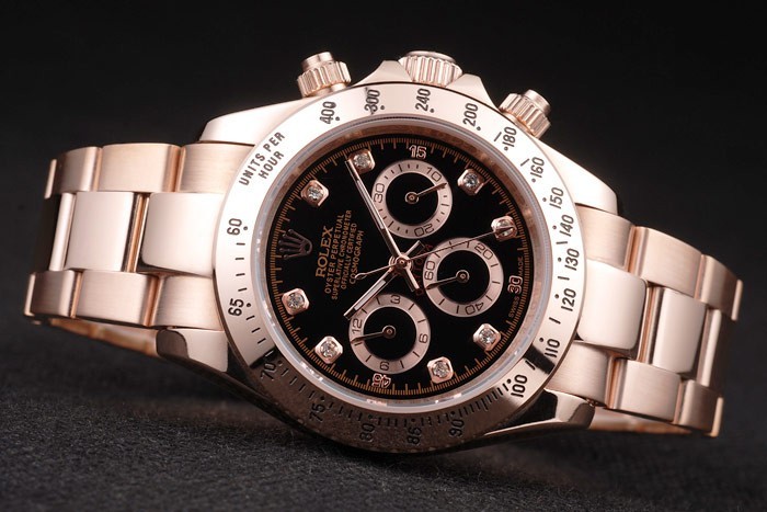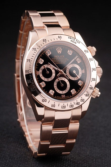Bracelet: 18k rose gold-plated stainless steel link bracelet with Rolex engraved fold- in deployment clasp displaying the Rolex logo