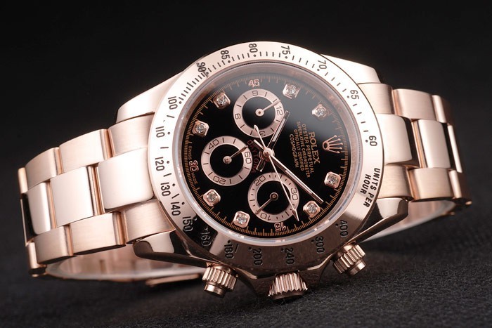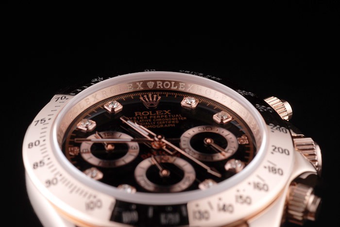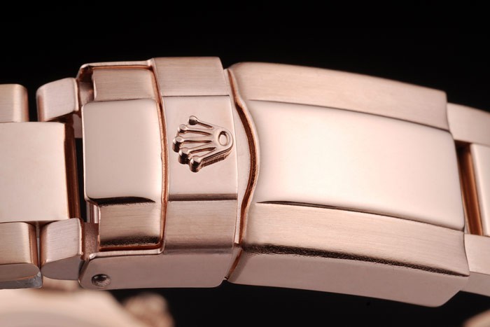 Crown: 18k rose-gold cutwork crown with Rolex logo and smaller crowns on either side of it