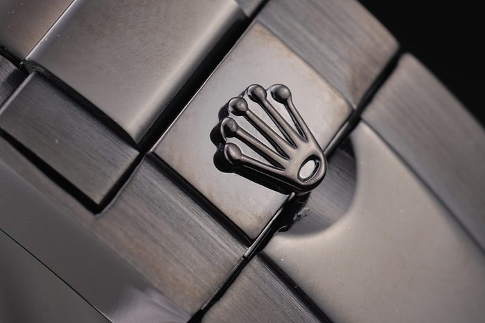 Bracelet: Ion-plated stainless steel link bracelet with engraved fold-in clasp with Rolex logo on top