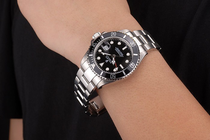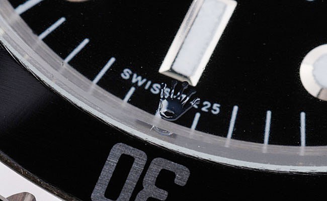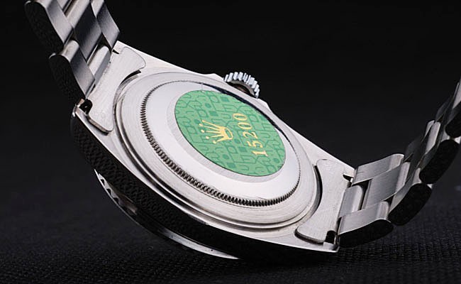 Back: Stainless steel push-in case back with green Rolex engraving stamp