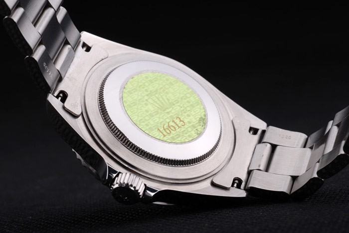 Back: Stainless steel push-in case back with green Rolex engraving stamp