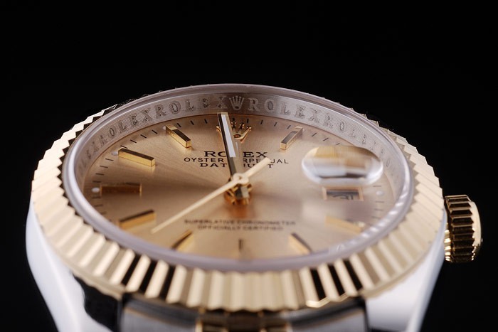 Crown: 18k yellow gold plated cutwork crown with Rolex logo engraving