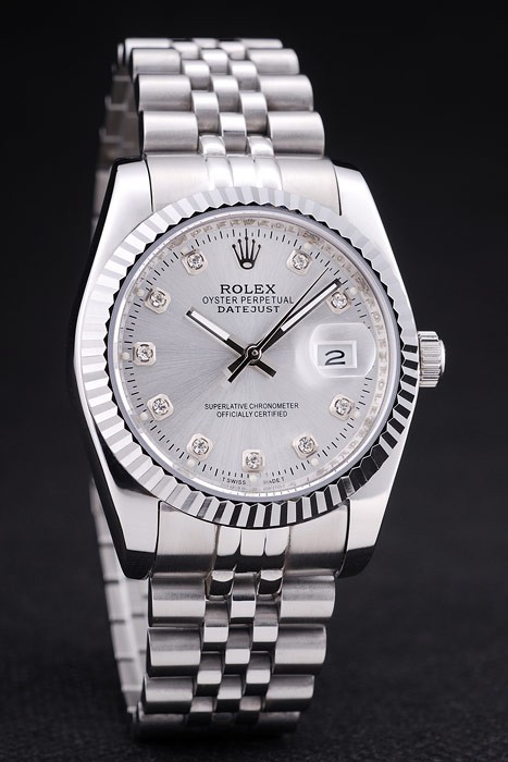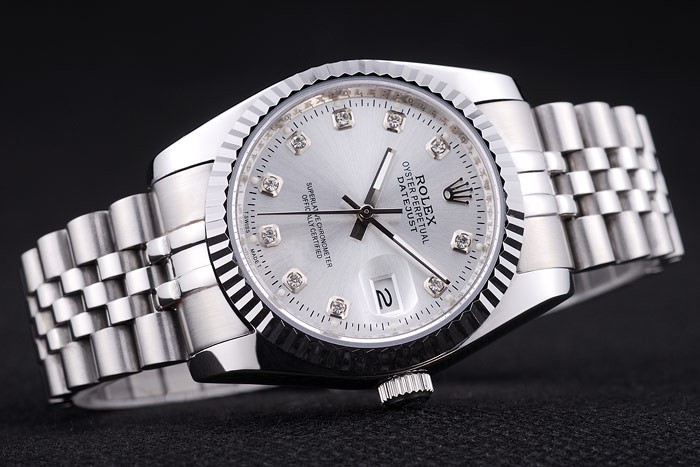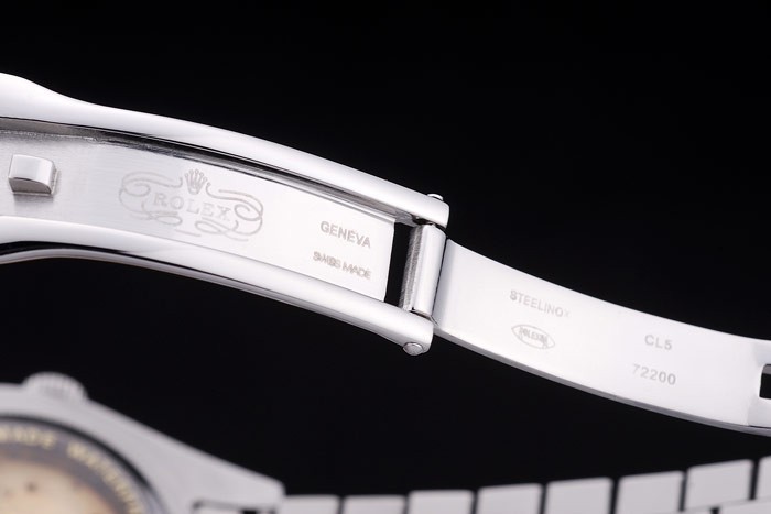 Crown: Polished stainless steel cutwork crown with Rolex logo engraving