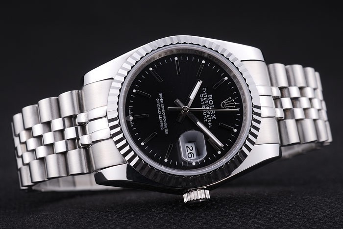 Crown: Polished stainless steel cutwork crown with Rolex logo engraving