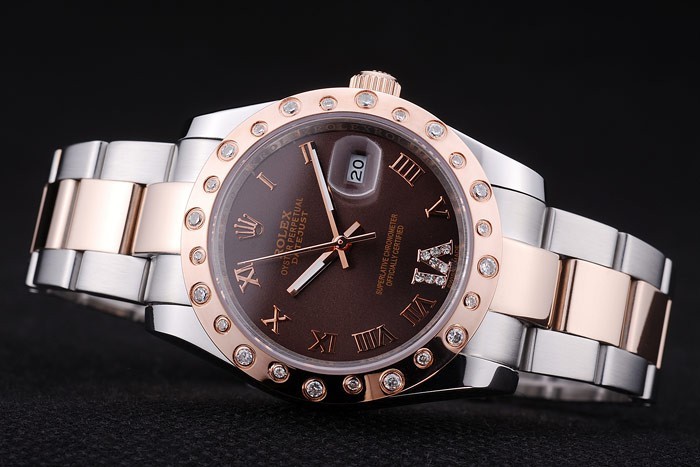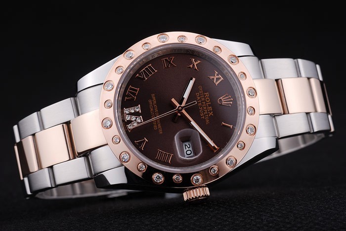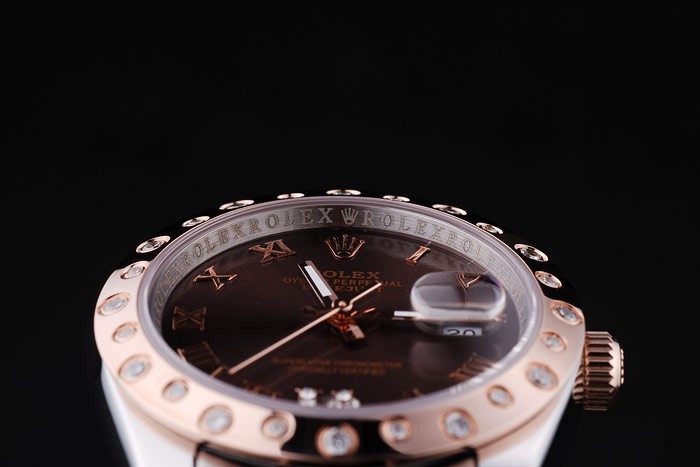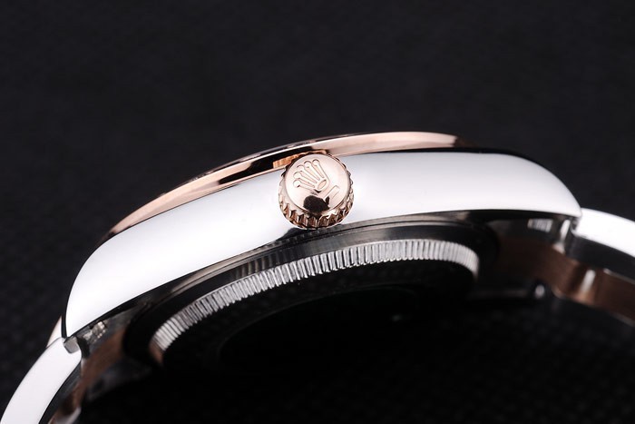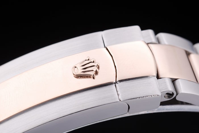 Crown: 18k rose-gold plated cutwork crown with Rolex logo engraving