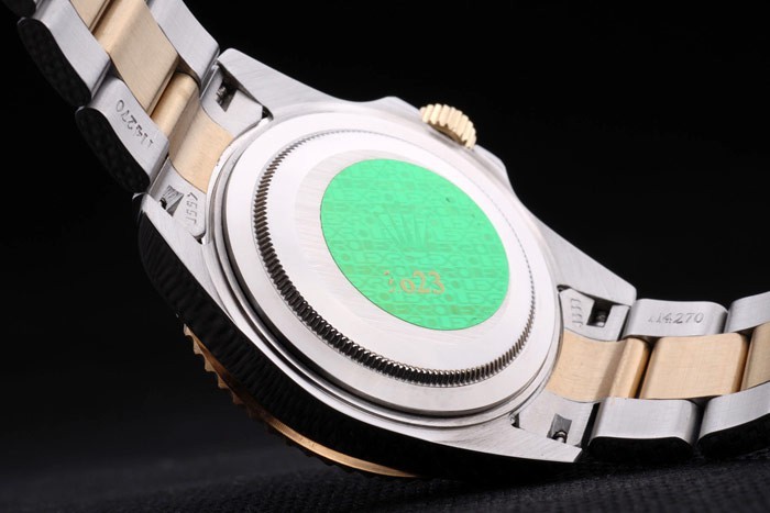 Back: Stainless steel push-in case back with green Rolex engraving stamp