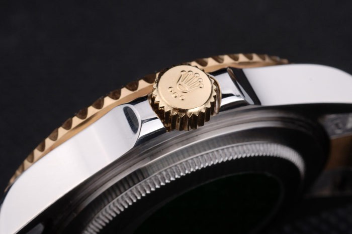 Crown: 18k yellow gold plated steel cutwork crown with Rolex logo