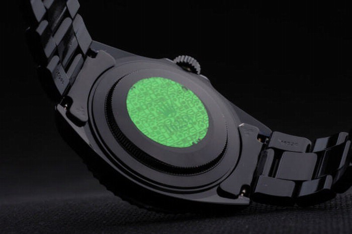 Back: Ion-plated stainless steel push-in case back with green Rolex logo stamp
