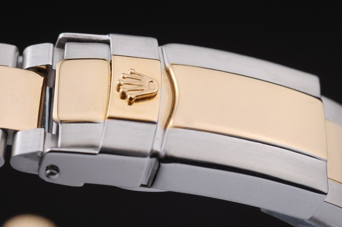 Crown: 18k yellow gold plated steel cutwork crown with Rolex logo