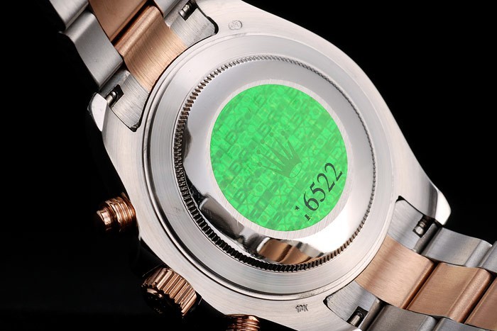 Back: Stainless steel snap-in back with green Rolex authenticity sticker
